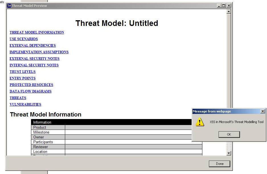 Just arbitrary coolness regarding Microsoft’s Threat Modeller. It’s XSS-ible…