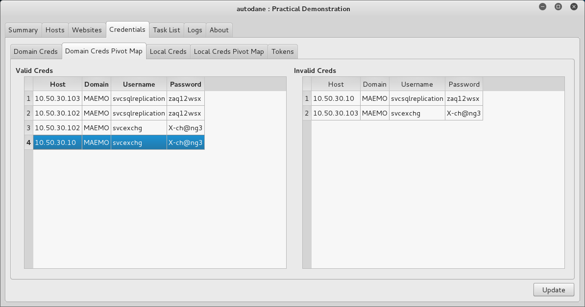 However, the real value comes from the Domain Credentials Map, which shows where different sets of credentials can be used. Ultimately, this will show you which credentials can log into various Domain Controllers.