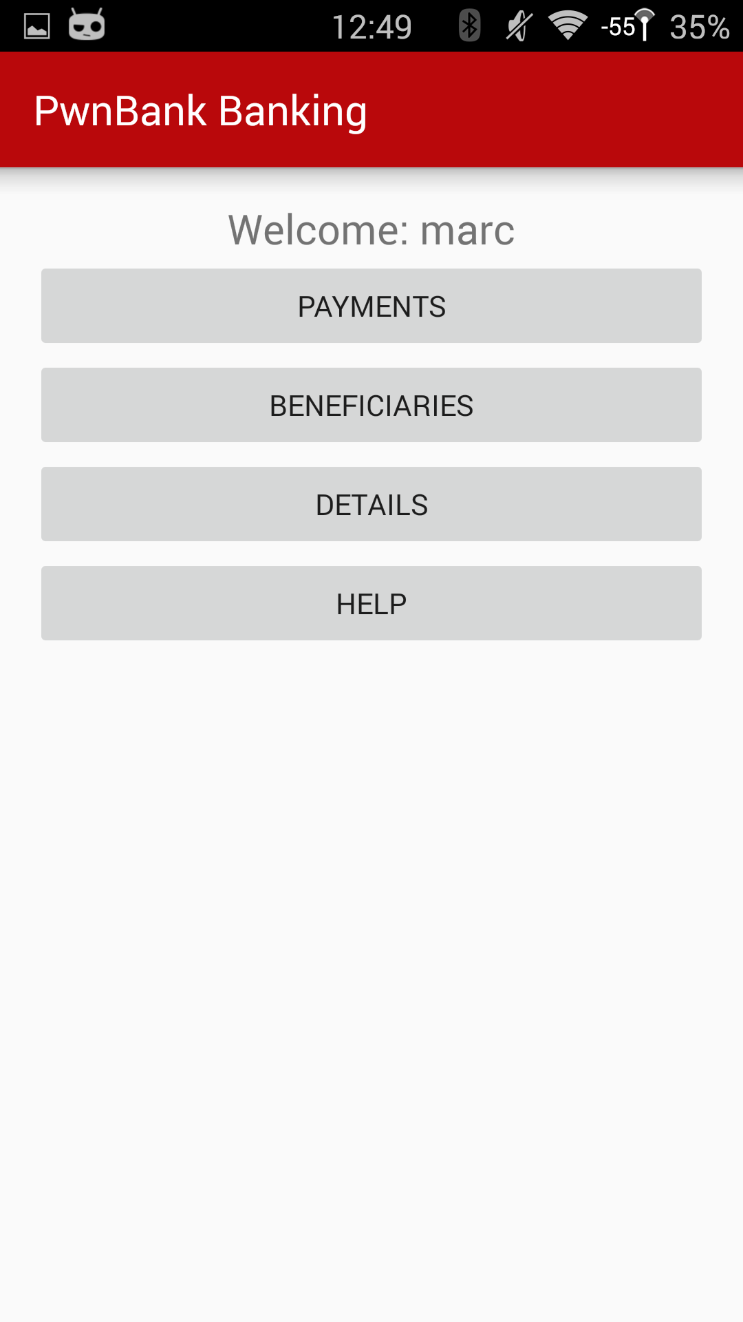 Of course no good blog post is without screenshots, so here are some of Pwnbank itself.