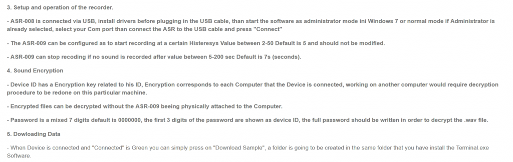 - Current consumption in standby mode, start recording at Sound activation above a certain Sound Wav – 0.01 mA