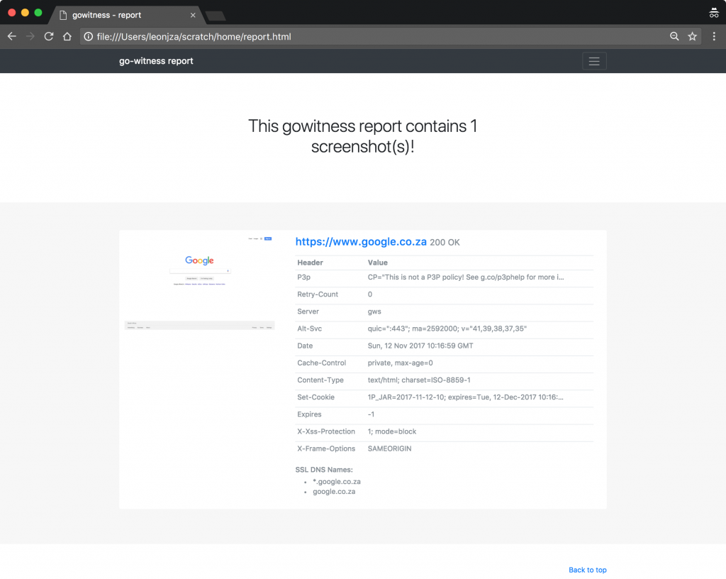 Plan B it is! Without the ability to screenshot SSL enabled web interfaces, this tools implementation with Chrome Headless would be a dead end. Thankfully though, considering we are using Golang, we could use the built in NewSingleHostReverseProxy helper, which I did. What this means is that as soon as gowitness detects that an SSL enabled web interface should have a screenshot taken, it will start a new HTTP -> HTTPS reverse proxy on a random port and configure the command line arguments for Chrome Headless to rather connect to the proxy on localhost using plain HTTP and screenshot that. The reverse proxy is then configured to ignore any SSL related errors and just passthrough requests and responses. B-)