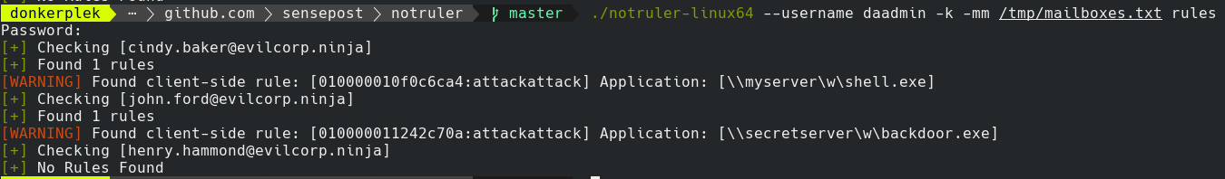 ./notruler-linux64 -k --mailbox john.ford@evilcorp.ninja --username john.ford --self rules