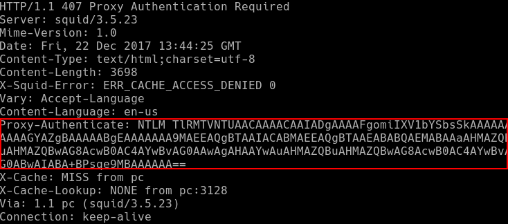 This header in itself is quite interesting – its part of the HTTP 407 response, which specifies that one needs to authenticate before one is allowed to use the HTTP proxy. One can specify which authentication type should be used as well, such as NTLM. This can be quite useful in combination with WPAD and Responder – instead of requesting the client to NTLM authenticate when trying to download the PAC file, one can allow anyone to download the file without authentication. Once they use the proxy however, they are forced to authenticate via the Proxy-Authenticate and Proxy-Authorization headers. This allows one to capture hashes in Windows 10, which has been configured not to automatically authenticate when downloading a WPAD proxy’s PAC file. The approach has been suggested in this blogpost by Fox-IT and is now incorporated in ntlmrelayx.py in the impacket project.