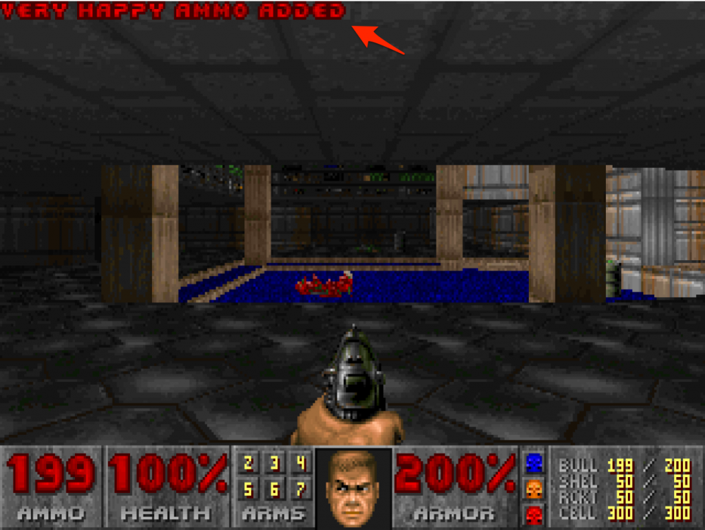 To implement this the chocolate-doom binary was analysed to find the logic that handles the current cheats. We knew that if you typed “idkfa”, the game would pop up a message saying “VERY HAPPY AMMO ADDED”.