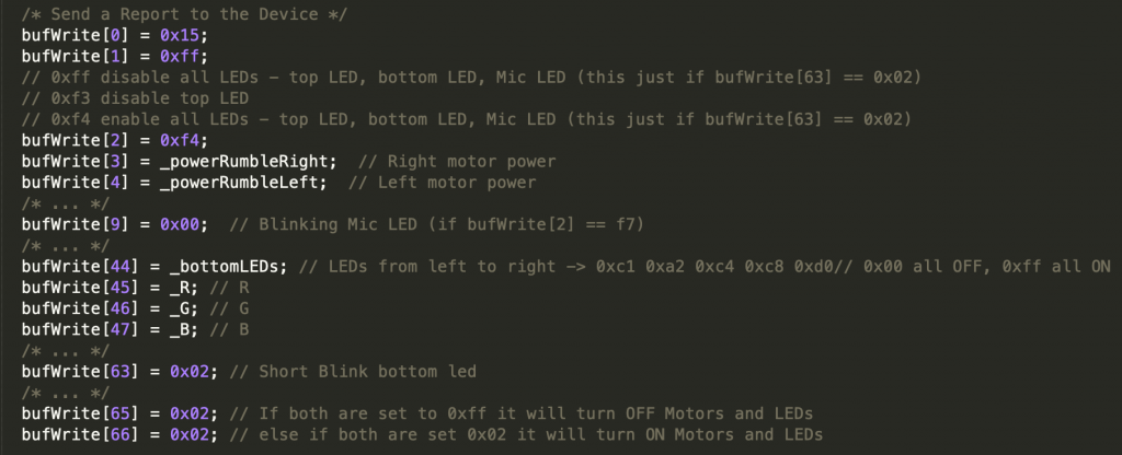 I wrote a script and started sending a bunch of bytes at a time to the DualSense in order to understand how to control/use its functionalities.