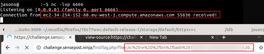 We could therefore assume the firstflag.php file was appending .html to the end of the file it was requesting. There were several ways to achieve this flag including, arbitrary file read, uploading a webshell and remote command injection. Here we will talk through the remote command injection vulnerability which was caused by an unsanitised system call within the firstflag.php page: