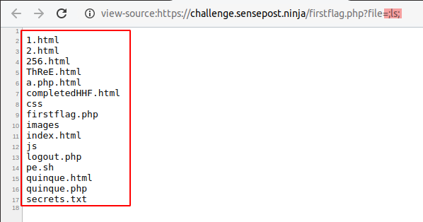 If we were to try access the file directly we would have seen it was accessible with the extension .html. The secrets file was inaccessible when being called from firstflag.php.