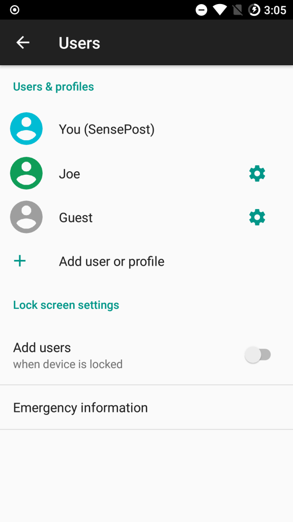 You can also view the users on an Android device by going to Settings and then searching “users”. You should get a result for a users section where you can see a listing of current users as well as options to create/delete new users.