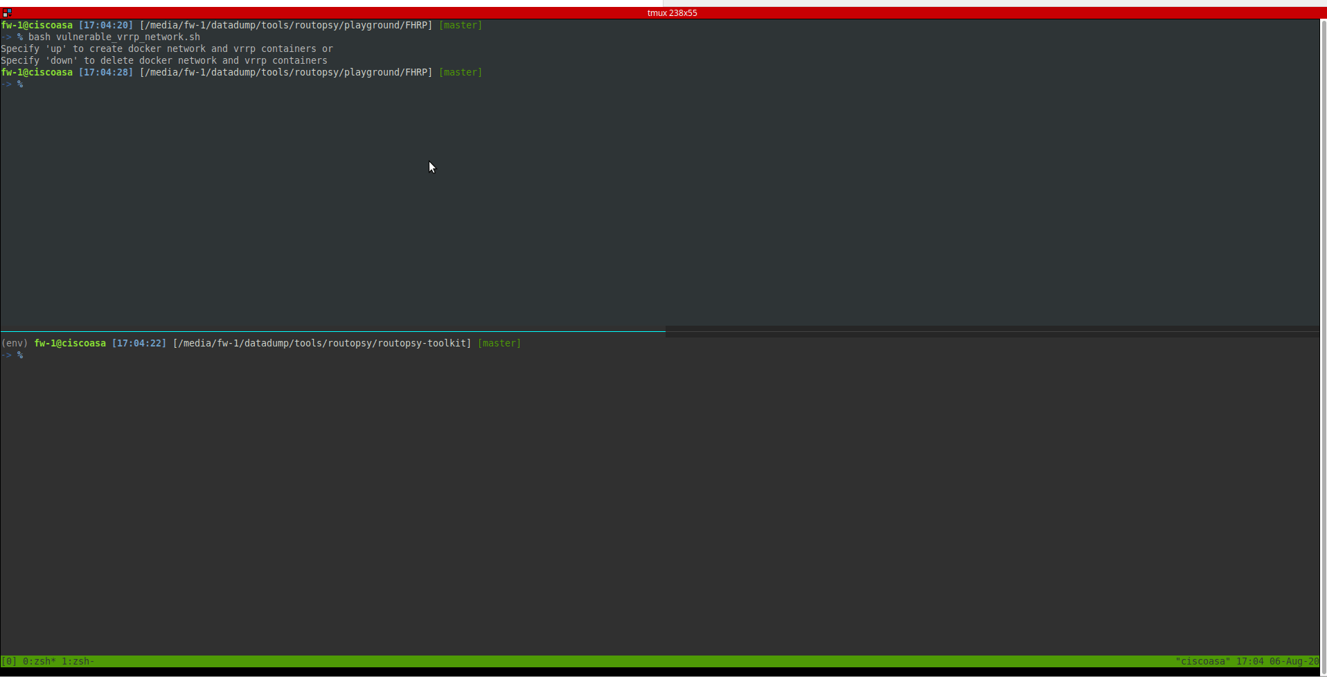 What makes Routopsy different from older tools? It is modular by design, which enables us to attack network related protocols using a virtual router such as frrouting. The router itself runs in a docker container, wrapped with an orchestration layer built with python3. That way we can easily use a powerful packet crafting library such as scapy, which is used extensively in the toolkit.