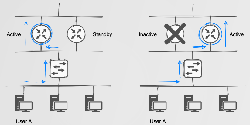 First Hop Redundancy Protocols provide a redundant Layer 3 address/gateway by making use of a virtual IP/MAC address pair. The virtual IP/MAC address is assigned to a device with the highest priority within a logical group. Devices which choose to route their traffic via the virtual IP/MAC are oblivious to network failures as the virtual addresses are assigned to the current active, highest priority device. Should a failure occur, the secondary device would be assigned the virtual address pair. The usually happens fast enough that other devices won’t even notice the change.
