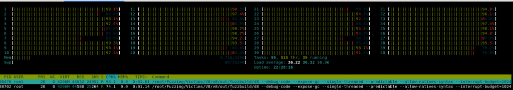 In the days prior to the discovery, most of my efforts were spent on understanding Fuzzilli and analysing how to reach interesting parts of v8’s code. If we just decided to launch fuzzers with “out-of-the-box” configurations it’s very likely that we won’t find any vulnerabilities. Fuzzing is a constant race with many other people doing it. Then, if we wanted complete code coverage we’d need a vast amount of resources due to the pure size of v8’s code base. Without complete coverage we wouldn’t get the necessary depth, which is often needed to find complex and exploitable bugs.