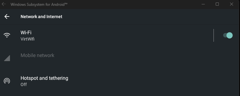 At this point you’ll have a basic WSA installation up and running. However, it is limited to the Amazon app store, and that is not very useful for what we want to do!