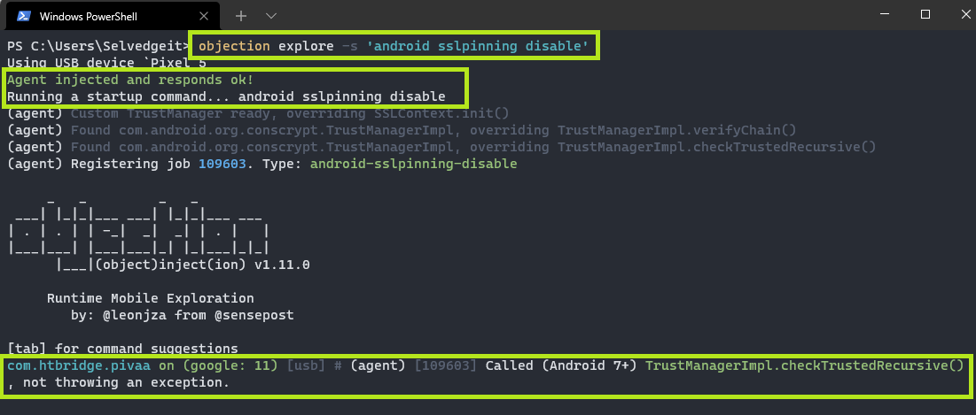 adb install .\pivaa.objection.apk