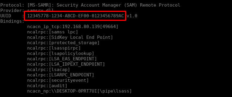 Using these string bindings we have enough information to be able to connect to an endpoint. The next step is to bind to an interface. To do so, we need two pieces of information that, once again, are exposed by the epmapper: the UUID of the interface and its version.