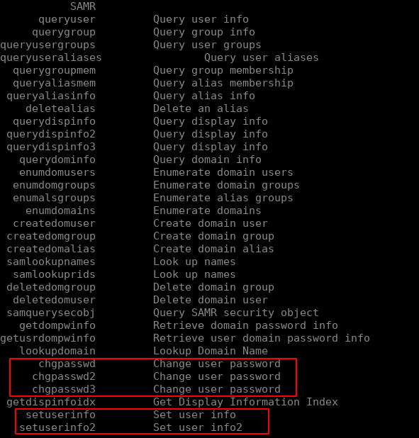 Let’s take a look at one of the interfaces we saw previously, let’s say the SAMR interface. This interface is used by sysadmins to manage users and groups remotely. You may have already used it if you ever changed your password using rpcclient and one of the following functions:
