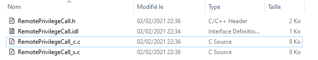 Now that our interface is defined we will need to translate it into C code. To do so we will use a binary called midl.exe with the following command:
