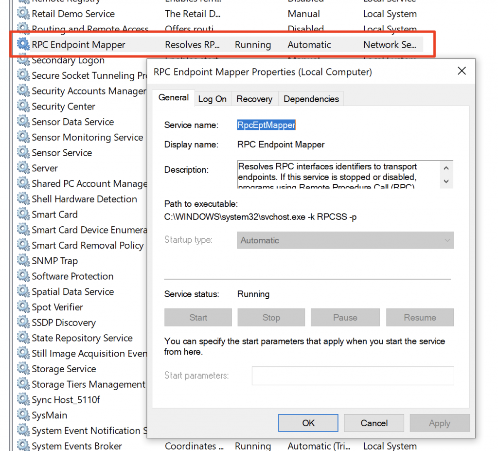 If you are completely new to the RPC protocol you might be wondering how a computer would call these remote interfaces. How does it know which interfaces are reachable and how to connect to them? In Windows there is a service that is responsible for listing exposed interfaces. This service is called the RPC Endpoint Mapper or epmapper: