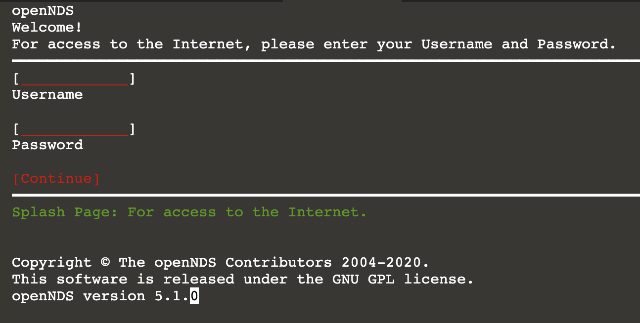 Having been foiled, we start up airodump again and view the connected devices. Given the way Wi-Fi works we get to see the MAC addresses of both the Access Point and Stations (Devices connecting) in our airodump output. This is convenient as the primary way most captive portals work is to redirect unauthenticated users/MAC addresses to a captive portal via some sort of interception. Once authenticated the users MAC address is added to an allowlist, bypassing the captive portal and allowing them to use the Internet normally. The software in use for this in the example is OpenNDS which is a very popular implementation.
