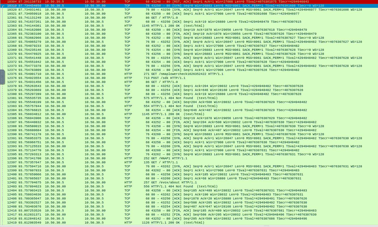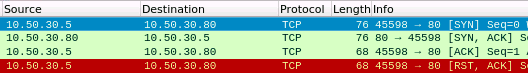 As we can see the TCP connect scan completed a full handshake on port 80 before resetting the connection with a RST flag to close the connection.