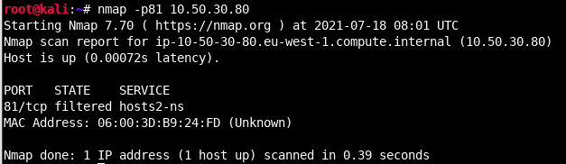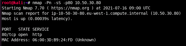 This scan type opens a full connection to a TCP port, which is far easier to be detected by network monitors, and not always what you want. Instead, we often prefer to use a TCP SYN scan, or a half open scan as its often referred to as (or “stealthy scan” if you want) with the -sS flag. In order to perform a half open scan, nmap needs to be running with root permissions. Coincidently, the TCP SYN scan type is also the default when nmap is running as root.