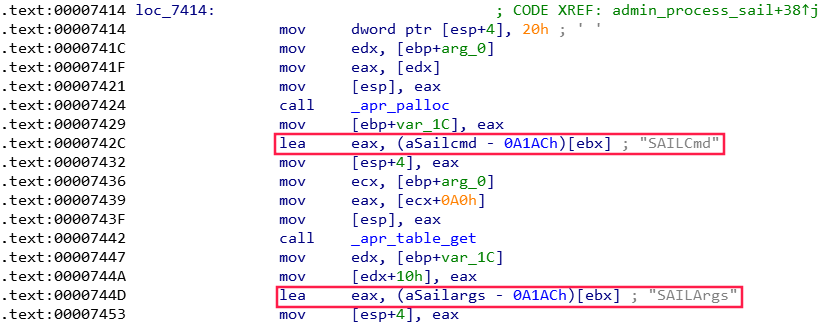 Some time later, I found the code responsible for processing incoming HTTP requests. It contained references to two headers, SAILCmd and SAILArgs: