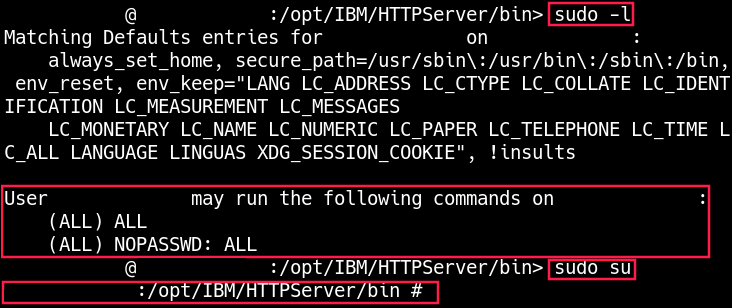 Having gained the ability to write files, I wanted to upload a web shell to take over the web server. IHS however mostly serves static HTML content, so my JSP/PHP webshell wouldn’t work. Luckily, IHS still supports CGI. After a couple of attempts, I uploaded a working CGI web shell. I had to overwrite an exiting CGI script, so that the file would have the execution bit set, else it wouldn’t run.
