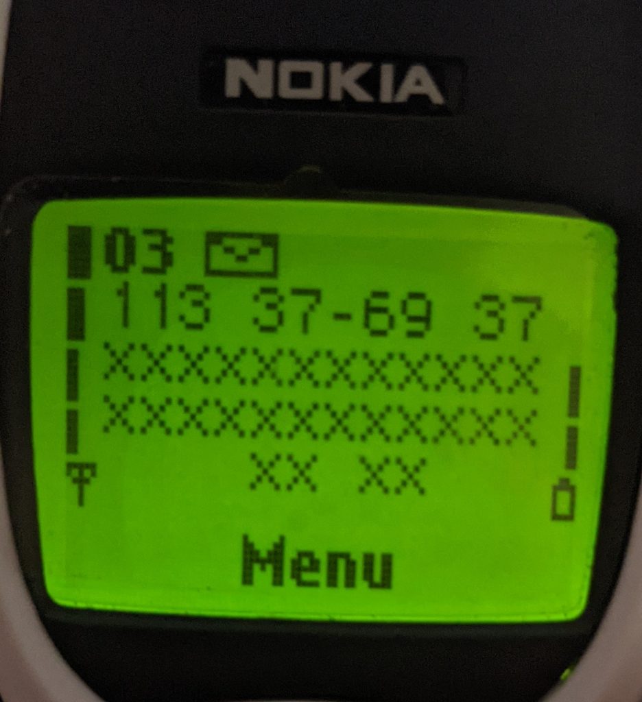 - Display 132 (Nokia 3310): Call information