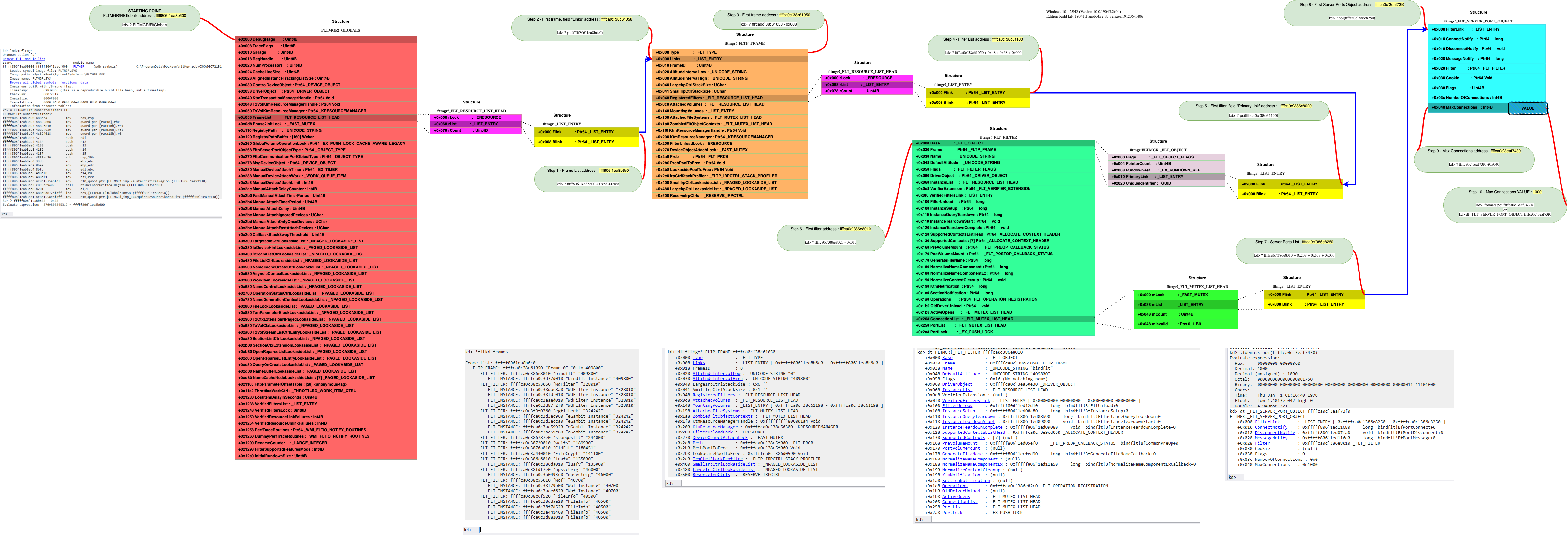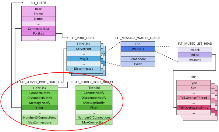 The data structure named FLT_SERVER_PORT_OBJECT drew my attention because it seemed to contain interesting fields, see if you agree: