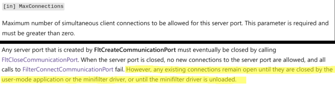 This data structure is initialised using the Windows Drivers API named FltCreateCommunicationPort: