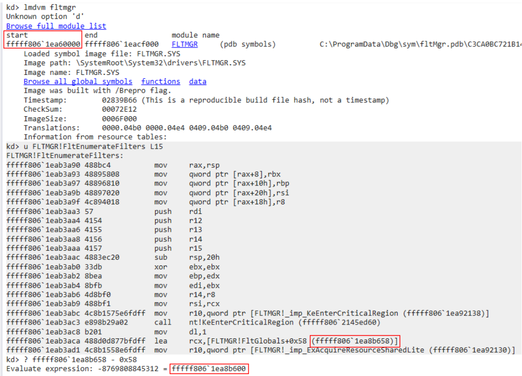 – compute FLTMGR!FltGlobals start address: 0xfffff8061ea8b600
