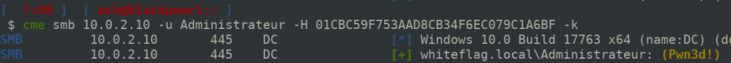 The interesting thing is that RC4 cyphers the timestamp using the NT hash of the user. Since we have a valid NT hash, we can cipher the timestamp and have a valid KRB_AS_REQ packet. With the CrackMapExec framework we can now connect to remote servers using two well known attacks: