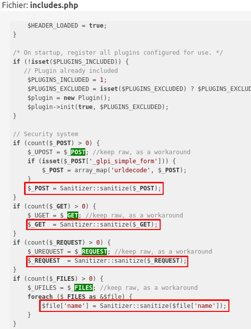 In fact the Sanitizer class acts as a (kind of) middleware on GLPI that protects against some attacks: