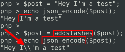 As you can see above, globals are protected against some attacks because this file is loaded at the beginning of each request. So how can we perform SQL injection if it is already escaped? Here comes an interesting thing. To answer that, let’s first take a look at the json_encode function.