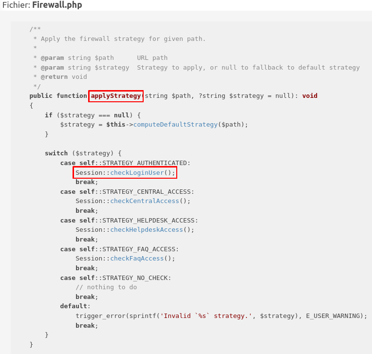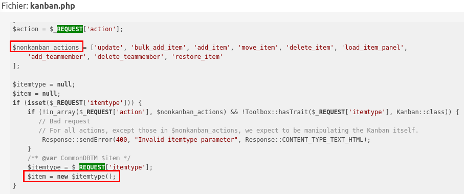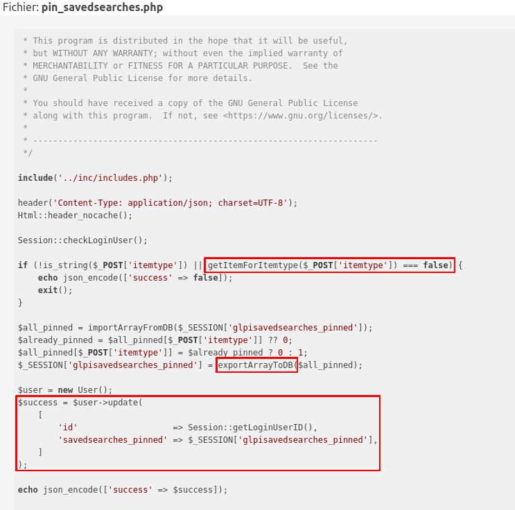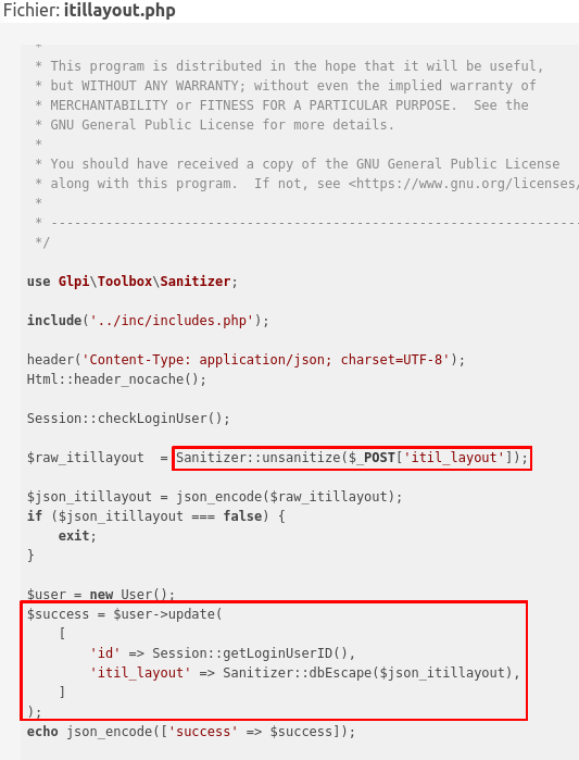 Luckily for me, when I reported a vulnerability on GLPI in the past, another person (Abdulmohsen Alotaibi) reported one at almost the same time, see: https://huntr.com/bounties/82443f1f-300b-4d5a-a1ab-73902263ea4b. In fact, at the time I was studying for the OSWE exam, and so, I checked a lot of public vulnerabilities to improve my code understanding. And this one was interesting. By checking the code, I found what I needed for building the kill chain!