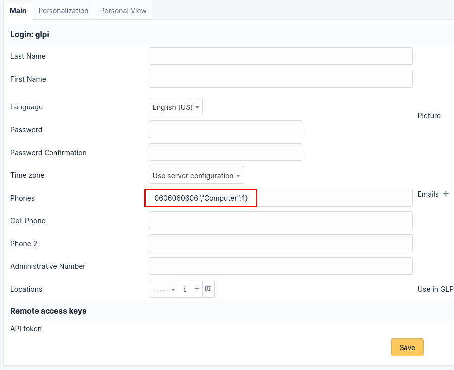 From now on, we can update any field of the glpi_users table. You can for instance change the password of an account, but this is really not good during a penetration test. I choose to exploit the use of the API Token. In GLPI, API Tokens can be used to log in (default behaviour), even if the API is not set, see the config:
