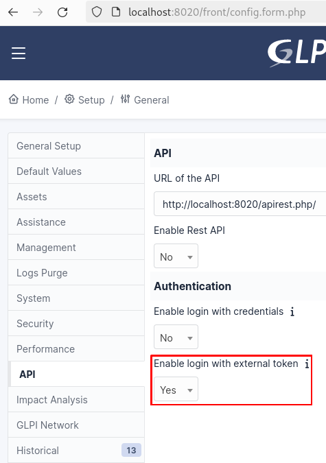 NOTE: To login with an API token on GLPI, you need to either use a tool like BURP, or code a small program to connect and dump cookies once logged in. Moreover, note that cookies on GLPI depend on the URL used to connect. For instance, the cookie valid for http://localhost will not be valid for http://127.0.0.1.