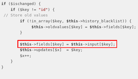 The user object is updated given the whole $_POST variable. You can already think of a vulnerability here. Someone told me when looking for a vulnerability: Always follow your intuition. So here we are, it looks like there is a mass assignment opportunity given a Superglobal. Let’s give it a try, and add the variable we want to update through the POST request directly: