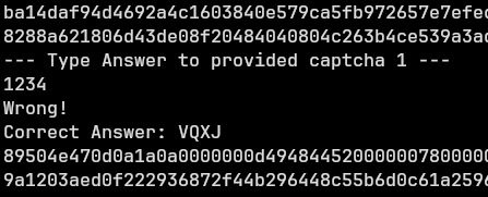 After an incorrect value was given, the instance would provide the correct value. So I made a script to capture the hex, send “1234” as the answer, capture the corrected answer and named the hex file to the corrected value.