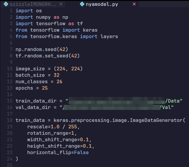 After ensuring the dataset had unique values exclusively, I created a model once more. At the end I found 25 Epochs and minimal to no image pre-processing to provide the best accuracy.