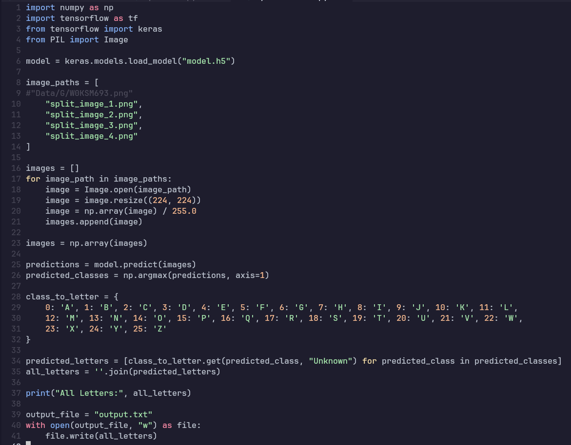 This was the bare minimum for creating the tool, obviously there are remaining issue such as the images only being greyscale, but in terms of CAPTCHA and what this will be used for, its not that important, since the colour of the number/letter does not contribute to solving the CAPTCHA. For the future, I would still like to include other image formats to support a wider range of dataset collection. This will mean adding more to the NN to process other data differently as well as more pre-processing of images, if not already outside of this script.