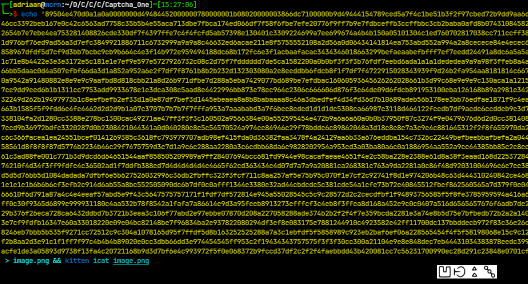 What’s happening? We connect to the instance using netcat, thereafter; the prompt states to solve the CAPTCHA 200 consecutive time in order for the flag to be given. The image is given in hexadecimal format. Viewing the image: