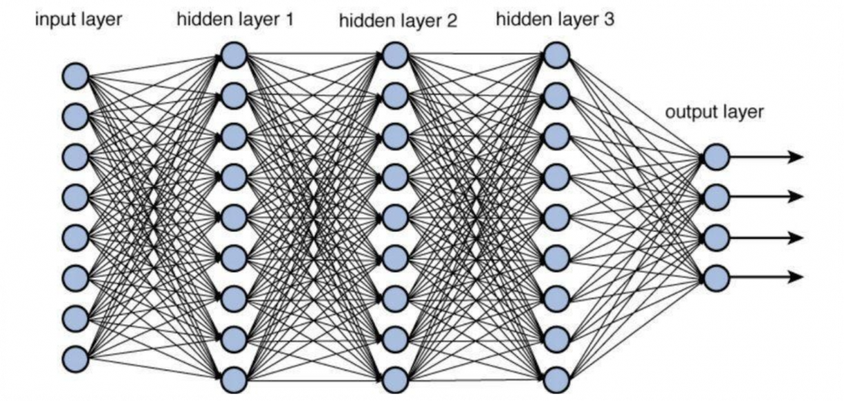 This is how the training would take place, the input layer is the image’s pixels, which goes through hidden layers 1, 2 and 3 – each determining which next point it will go to, ultimately; resulting in matching the image to the class it most likely belongs to in the output layer.