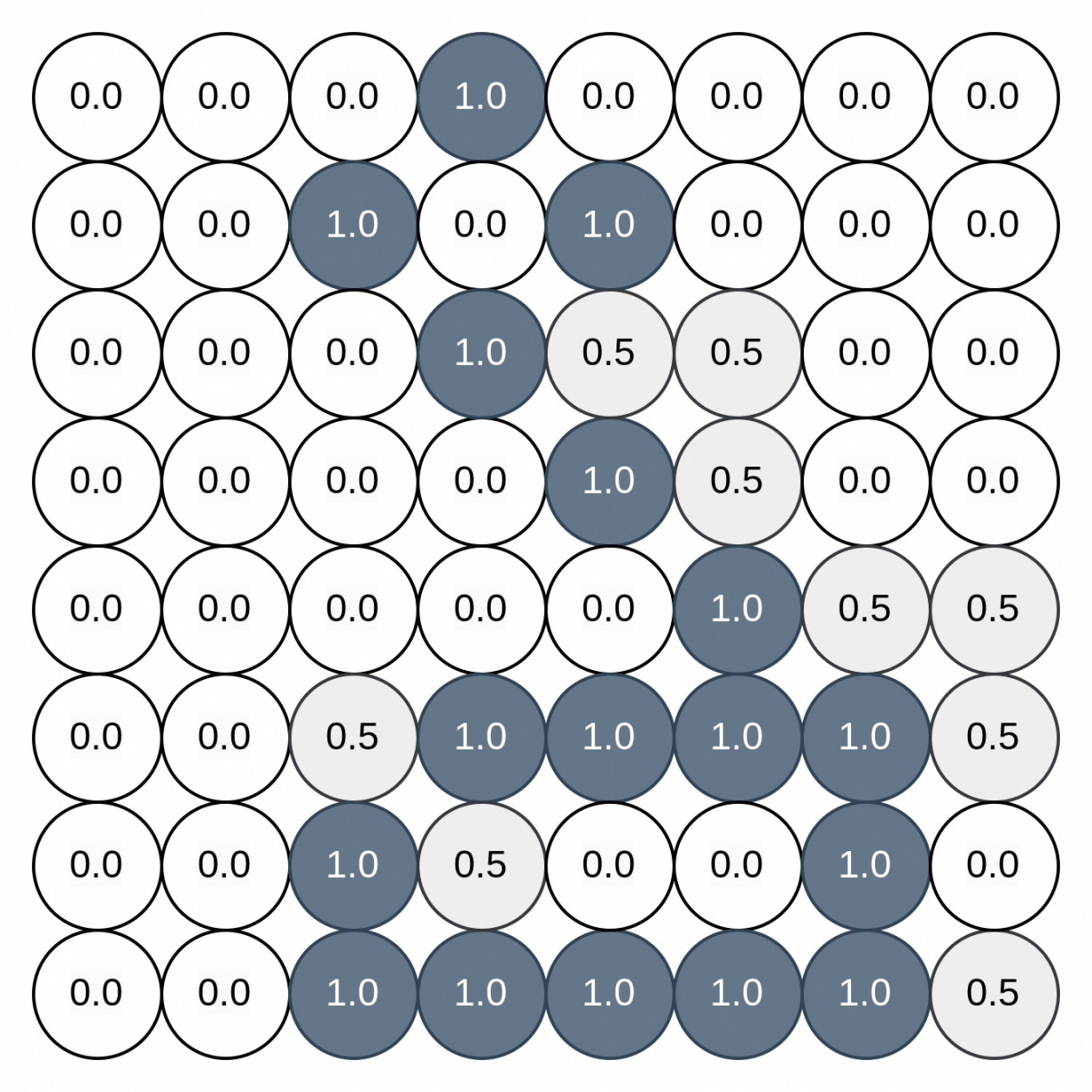 If you couldn’t tell by now this was the symbol for A in Bill Cipher. The values 0.5 are the edges of the image, think of it like the blurring effect you see in images when the definition is not as sharp. This is how images are interpreted by neural networks. So this is the “neural” part. What is the “network” part?