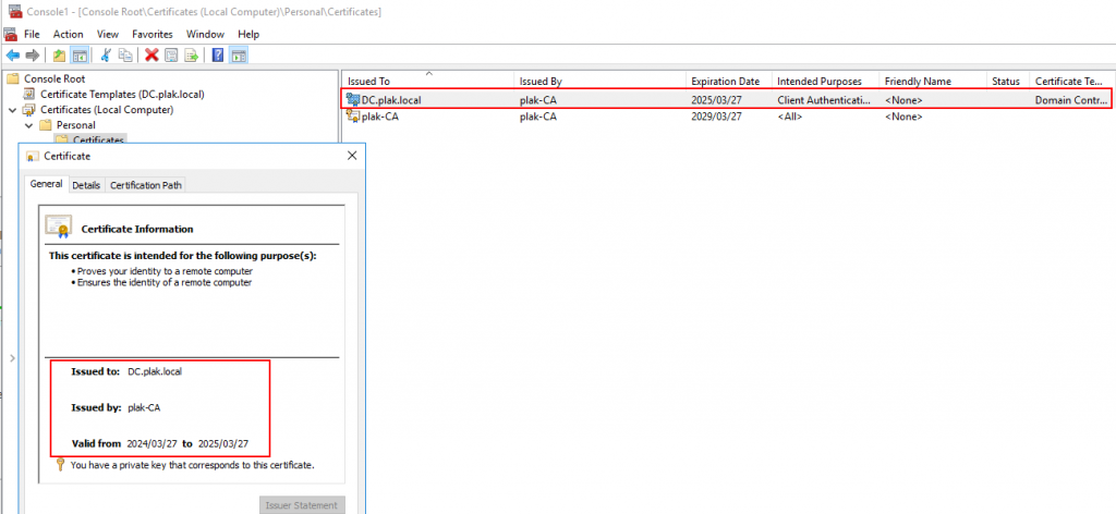 Let’s explore the following scenario. In my AD lab, I have a DC that’s got a Domain Controller and CA certificate that expired on March 27th: