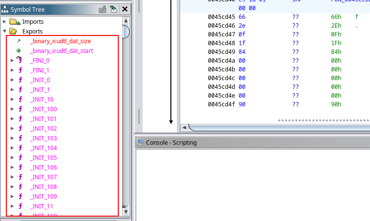 Using the handle above, I started to explore the imports and exports of the module but quickly realised that it did not hold much success – as Ghidra confirmed as well. For example, the exports just showed this: