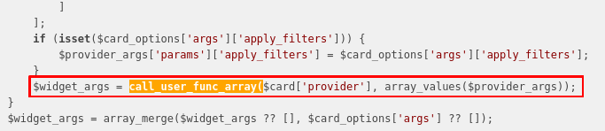 By looking at this, I was wondering if there was a vulnerability in one of those widgets. It increases our surface attack by a lot, and might potentially lead to privilege escalation. It is also important to note that we do not fully control the variables given in the call_user_func function.